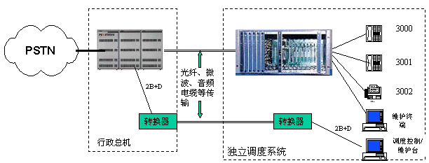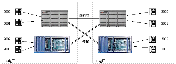 適用范圍:這種應(yīng)用適用于對電話系統(tǒng)安全性要求嚴(yán)格的場合,如電力系統(tǒng)行政交換機(jī)與調(diào)度交換機(jī)就可以以上述方式實(shí)現(xiàn)備份,從而實(shí)現(xiàn)行政或調(diào)度交換機(jī)某一臺不能工作時,依然可以通過備份系統(tǒng)打電話。