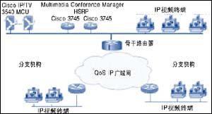 在企業(yè)總部部署Cisco 公司模塊化的IP/VC 3540 MCU(多點(diǎn)制單元,Multipoint Control Unit),每個IP/VC