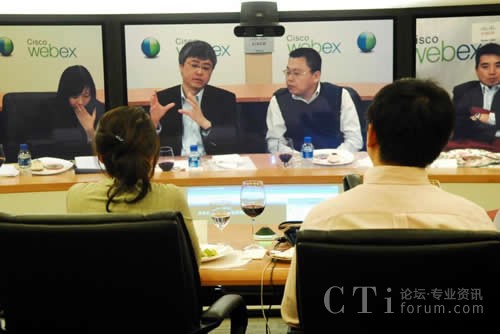 CTI論壇(ctiforum)5月6日消息(記者 楊佳林):中國(guó),北京,2010年4月28日:無(wú)需像德國(guó)國(guó)防部長(zhǎng)古滕貝格那樣駕車(chē)行駛3000多公里長(zhǎng)途奔襲,跨越太平洋也一樣享受零距離的午餐。思科中國(guó)首席技術(shù)官梁永健、思科中國(guó)區(qū)副總裁華東區(qū)總經(jīng)理陳葵、思科WebEx研發(fā)及協(xié)作軟件全球副總裁袁征今天通過(guò)思科的網(wǎng)絡(luò)會(huì)議技術(shù)和中國(guó)知名博主在北京、上海和舊金山三地共進(jìn)午餐。