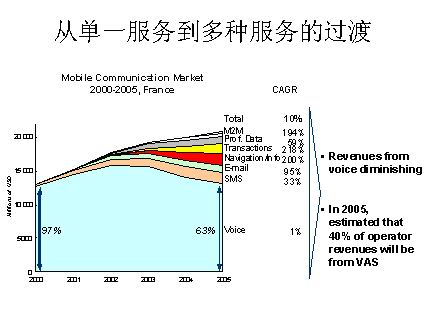 每一個(gè)細(xì)分市場(chǎng)從傳統(tǒng)的基礎(chǔ)服務(wù)逐漸向用戶的應(yīng)用需求靠攏,并以打包的方式向用戶提供解決方案服務(wù),造成增值電信業(yè)務(wù)的價(jià)值鏈越來越復(fù)雜。同時(shí),用戶的需求主要體現(xiàn)在方便性和娛樂上,以移動(dòng)增值業(yè)務(wù)為例,歐美的增值業(yè)務(wù)主要是被滿足用戶的方便性、實(shí)現(xiàn)實(shí)時(shí)通訊需求的即時(shí)短信等為主導(dǎo),而亞洲國(guó)家則普遍在以娛樂功能為主的SMS和移動(dòng)游戲業(yè)務(wù)上潛力巨大。我們應(yīng)該看到,不管以哪種業(yè)務(wù)為主導(dǎo),市場(chǎng)的彈性都普遍增加,市場(chǎng)前景的不確定性增大。其中最顯著的特點(diǎn)為,市場(chǎng)需求不再是恒定的,市場(chǎng)的大小在很大程度上是由運(yùn)營(yíng)商的經(jīng)營(yíng)決定的,與運(yùn)營(yíng)商的業(yè)務(wù)提供方式和促銷的效率密切相關(guān)。這無疑對(duì)運(yùn)營(yíng)商在新業(yè)務(wù)的市場(chǎng)預(yù)測(cè)、業(yè)務(wù)模式選擇和用戶需求的喚起上提出了更高的要求。