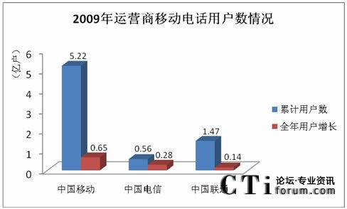 截至2009年12月31日,國(guó)內(nèi)移動(dòng)電話(huà)用戶(hù)累計(jì)達(dá)到74738.4萬(wàn)戶(hù),中國(guó)移動(dòng)的用戶(hù)總數(shù)已達(dá)到5.22億戶(hù),累計(jì)客戶(hù)凈增長(zhǎng)6503.3萬(wàn)戶(hù),在三大運(yùn)營(yíng)商中,中國(guó)移動(dòng)的用戶(hù)保有量和每月新增用戶(hù)數(shù)份額仍然最大。