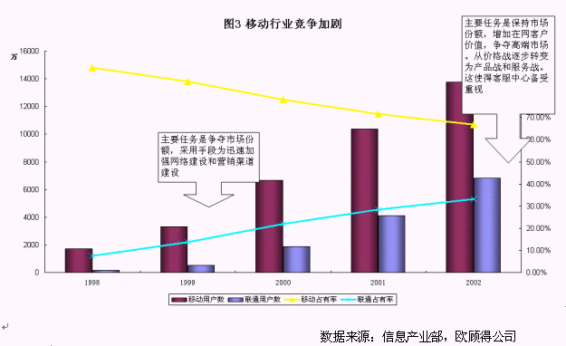 呼叫中心的作用正在隨著電信市場的激烈競爭而發(fā)生著變化。今年,移動、聯(lián)通、電信的主題都是"接通率"、"投訴處理情況"以及"服務(wù)質(zhì)量",網(wǎng)通則處于建設(shè)階段。明年,隨著市場環(huán)境的變化,呼叫中心的重點工作勢必有個轉(zhuǎn)變,各大運營商都將從單純強調(diào)"服務(wù)表現(xiàn)"轉(zhuǎn)為"服務(wù)表現(xiàn)"、"營銷"和"信息分析"并重。