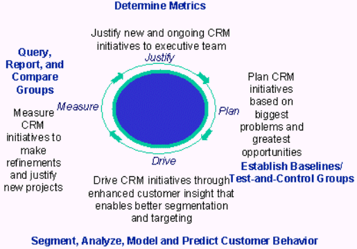 我們必須以循環(huán)的方式對CRM進(jìn)行研究,這樣我們就可以改進(jìn)我們的行為,評價我們的做法,繼續(xù)執(zhí)行CRM流程。在評價以及計劃階段,與已經(jīng)在測試控制小組中建立的標(biāo)準(zhǔn)相比,F(xiàn)SPs必須使用已經(jīng)經(jīng)過調(diào)整而不是先前就已經(jīng)決定了的標(biāo)準(zhǔn)。這樣,決策層(比方說產(chǎn)品,渠道、部門或者地區(qū)經(jīng)理,營銷經(jīng)理以及生產(chǎn)主任)就可以理解客戶行為,指導(dǎo)商業(yè)策略,優(yōu)化管理資源,改善銷售渠道,提高產(chǎn)品質(zhì)量以及增加客戶利益。只有經(jīng)過查詢,做報告,小組進(jìn)行比較才能夠有效開展這項活動。