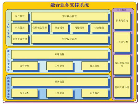 融合業(yè)務(wù)支撐系統(tǒng)提供對全業(yè)務(wù)運(yùn)營的端到端的支撐能力,包括以下幾方面。