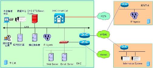 大連華信IP呼叫中心系統(tǒng)方案基于以下重要的部件,包括:DHC-Smart Call(一體化平臺,負責接入及語音處理),DHC-CTC/Smart Router(負責電話控制及路由),DHC VoIP Phone(IP電話機軟件)。