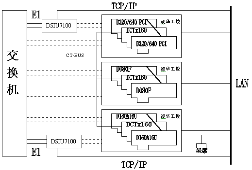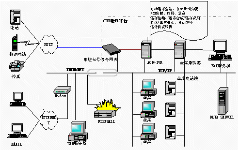 電信1000號客戶服務(wù)中心,集成了計算機網(wǎng)絡(luò)技術(shù)和計算機語音集成技術(shù)(CTI)。系統(tǒng)結(jié)構(gòu)可分為三部分:CTI硬件平臺、LAN網(wǎng)絡(luò)平臺、客戶服務(wù)軟件系統(tǒng)。東進公司推出了基于板卡的CTI硬件方案,以七號信令網(wǎng)關(guān)進行協(xié)議轉(zhuǎn)換。此硬件平臺具有以下優(yōu)點: