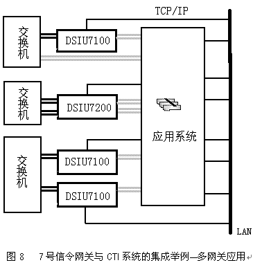 。。七號(hào)信令網(wǎng)關(guān)(SIU)能夠?qū)S7的各層協(xié)議轉(zhuǎn)化為TCP/IP格式,向用戶提供方便的標(biāo)準(zhǔn)接口,來控制和管理CTI應(yīng)用平臺(tái)。