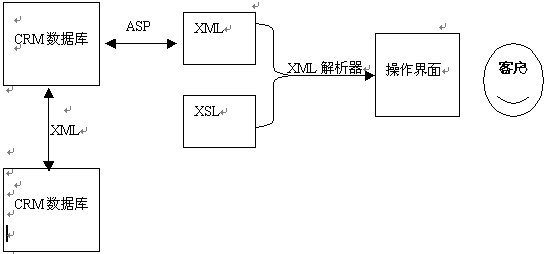 包括客戶資料,銷售報表等相關(guān)的客服信息都存儲在數(shù)據(jù)庫中,通過ASP應(yīng)用程序取出需要的數(shù)據(jù)生成符合條件的XML文檔,再通過安裝在服務(wù)器端的XML解析器按照預(yù)先設(shè)定的排版樣式XSL解析XML文檔,最后生成符合條件的HTML格式的CRM操作界面呈現(xiàn)在客戶面前?蛻魯(shù)據(jù)可能來自不同的數(shù)據(jù)庫,并且都有各自不同的復(fù)雜格式。但客戶與這些數(shù)據(jù)庫間只通過一種標準語言進行交互,那就是XML。由于XML的自定義性及可擴展性,它足以表達各種類型的數(shù)據(jù)?蛻羰盏綌(shù)據(jù)后可以進行處理,也可以在不同數(shù)據(jù)庫間進行傳遞。