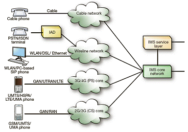 業(yè)務(wù)融合是指可以使用不同終端設(shè)備,通過不同接入網(wǎng)絡(luò)在任意時間和地點可接入的業(yè)務(wù),但業(yè)務(wù)標準是統(tǒng)一的。IMS 是和接入無關(guān)的技術(shù),可支持固定和移動接入網(wǎng)絡(luò),以及其它寬帶接入網(wǎng)絡(luò),支持用戶通過固定終端,移動終端,SIP軟終端接入到統(tǒng)一標準的多媒體業(yè)務(wù)。