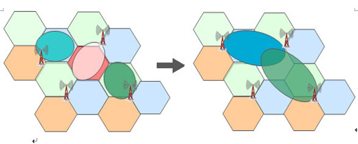 一旦出現(xiàn)退服,OSS會協(xié)調問題基站周邊基站的扇區(qū)來補償退服的無線覆蓋。如下圖,參與補償的基站會調整下行發(fā)射功率、天線傾角等來補償退服區(qū)域,甚至調低上行信號接收門限變相地擴大該扇區(qū)覆蓋以接入更多退服區(qū)域的終端。當然,由于扇區(qū)的調整,會造成鄰區(qū)關系變化、切換邊界變化、干擾增加,這些就需要OSS提供的其他功能ANR、MRO、ICIC來聯(lián)合優(yōu)化。