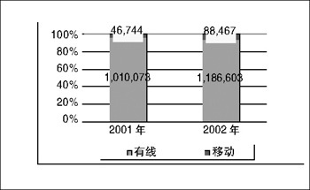各種類型游戲在整個游戲市場中所占的比例(2001年 / 2002年)