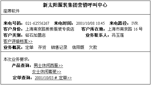 下圖是一個(gè)系統(tǒng)識別客戶身份和業(yè)務(wù)要求后在座席電腦上彈出信息處理窗口的例子: