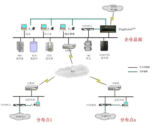 - 各個(gè)分布點(diǎn)的呼入和呼出都直接通過當(dāng)?shù)赝ㄐ欧⻊?wù)商,既保證了語(yǔ)音服務(wù)的質(zhì)量,又減少了系統(tǒng)的通話費(fèi)用。