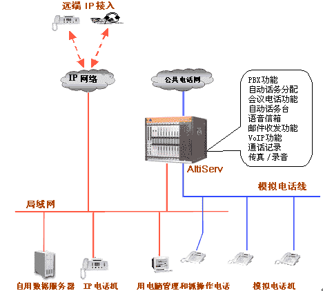 - 電話系統(tǒng)與傳統(tǒng)的交換機(jī)連為一個統(tǒng)一的通訊整體