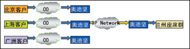 目標(biāo)服務(wù)客戶(hù)分散于各地,而客戶(hù)服務(wù)中心的座席集中于一地,通過(guò)IP將各地話(huà)務(wù)路由到座席所在地進(jìn)行電話(huà)服務(wù),大大節(jié)省呼叫中心座席的人工成本和通訊成本。