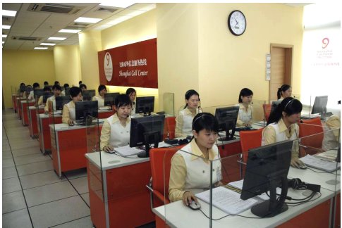 Shanghai Call Center第二話務廳內,中文座席員正在接聽媒體和商務來電。