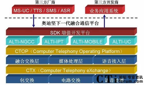 目前隨著軟交換的不斷發(fā)展,軟交換的架構(gòu)越來(lái)越適用于語(yǔ)音交換和呼叫中心系統(tǒng)平臺(tái), 并且其整合新技術(shù),新功能的能力也越來(lái)越強(qiáng)大,因此奧迪堅(jiān)在去年推出了下一代融合通信平臺(tái)解決方案。
