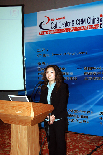 2006年4月3日至5日,2006中國呼叫中心與客戶關(guān)系管理大會(huì)在北京國際會(huì)議中心隆重召開,以下是億迅(中國)最佳商業(yè)模式咨詢顧問經(jīng)理孫莉?qū)n}演講實(shí)錄: