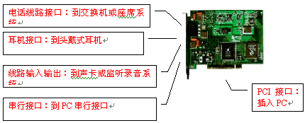 座席卡為呼叫中心座席終端卡,插入計算機PCI槽。一端與交換機、排隊機、座席系統(tǒng)用戶接口連接,另一端與耳機向連,以提供座席語音服務;座席卡還提供語音輸入輸出端口配合聲卡實現(xiàn)語音錄放;計算機通過串行口實現(xiàn)對座席卡的控制。