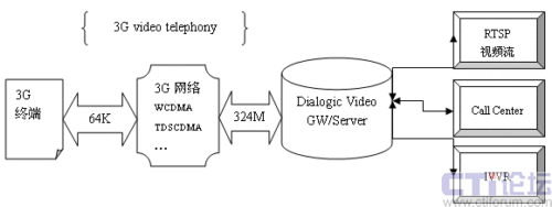我們看,左側(cè)是3G手機(jī),空中信道64基于TDM,右側(cè)是IP網(wǎng)掛業(yè)務(wù),包括呼叫中心、UC、流媒體服務(wù)器等,3G和IP網(wǎng)之間,需要有一個(gè)視頻網(wǎng)關(guān)(Video Gateway可以包括視頻媒體處理功能),將3G與IP流進(jìn)行相互轉(zhuǎn)換,視頻網(wǎng)關(guān)技術(shù)很關(guān)鍵,涉及到很多環(huán)節(jié),要考慮,比如如何保證視頻播放的流暢,丟幀如何處理,如何將延遲降低到最低限度,壓縮和解壓是否更有效率,是否支持多種視頻編碼方式及它們相互之間的轉(zhuǎn)換,如何支持3G視頻會(huì)議的需求。 這里涉及到很多的算法的積累,和在實(shí)際網(wǎng)絡(luò)環(huán)境下的應(yīng)用經(jīng)驗(yàn)。Dialogic公司可以提供滿足要求的產(chǎn)品。
