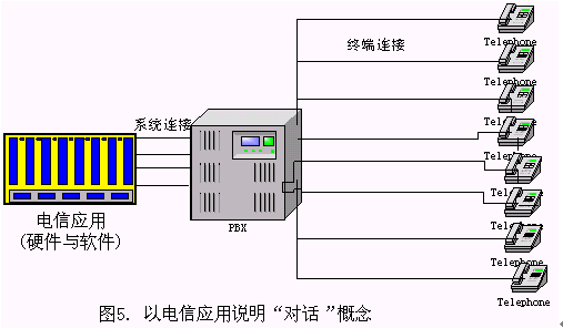 一般來說,一個(gè)基于電話語(yǔ)音識(shí)別的對(duì)話系統(tǒng)(如圖5所示),一般由識(shí)別服務(wù)器、應(yīng)用服務(wù)器、電話交換機(jī)、智能交換機(jī)設(shè)備、 IVR設(shè)備等設(shè)備組成,電話交換機(jī)與成千上萬(wàn)個(gè)電話終端通過各種交換設(shè)備相連接,電信應(yīng)用軟件在這些硬件的支持下提供各種服務(wù),如:1860查詢服務(wù)等。此時(shí),電信應(yīng)用開通的線數(shù)視系統(tǒng)的業(yè)務(wù)需求而定,一般總是大大小于終端連接的總數(shù)。系統(tǒng)連接數(shù)與終端連接數(shù)常常是1:1000或者1:10000的級(jí)別。"一路對(duì)話"是指物理上的一條線路,對(duì)于上述的電信應(yīng)用,電信開通的每一條線路都是一路對(duì)話。