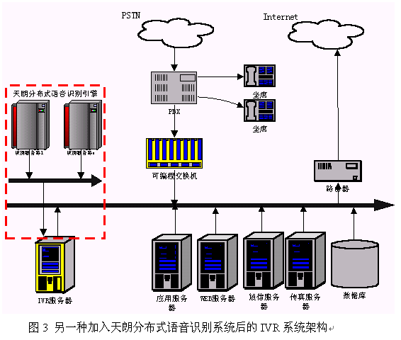 隨著語(yǔ)音識(shí)別的實(shí)用化進(jìn)程加快,人們?cè)絹?lái)越認(rèn)識(shí)到采用語(yǔ)音識(shí)別技術(shù)有利于極大的提高傳統(tǒng)按鍵方式IVR界面的友好性,提高服務(wù)的質(zhì)量。另外,采用語(yǔ)音識(shí)別技術(shù)可以把以前不可能實(shí)現(xiàn)的事情變得可行。因此,目前IVR行業(yè)越來(lái)越多的人認(rèn)識(shí)到語(yǔ)音識(shí)別技術(shù)的重要性,一些先行者已把語(yǔ)音識(shí)別技術(shù)集成到他們的系統(tǒng)中。那么,一個(gè)IVR廠(chǎng)商如何把天朗分布式語(yǔ)音識(shí)別系統(tǒng)集成到他們的IVR中呢?