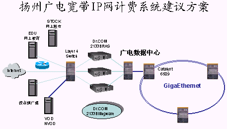 對(duì)于以上這些實(shí)際問題,北京城市熱點(diǎn)的Dr.com(AAA)計(jì)費(fèi)系統(tǒng)給予了比較完滿的解決。下面我們通過揚(yáng)州有線網(wǎng)的具體方案來(lái)實(shí)際體驗(yàn)一下。