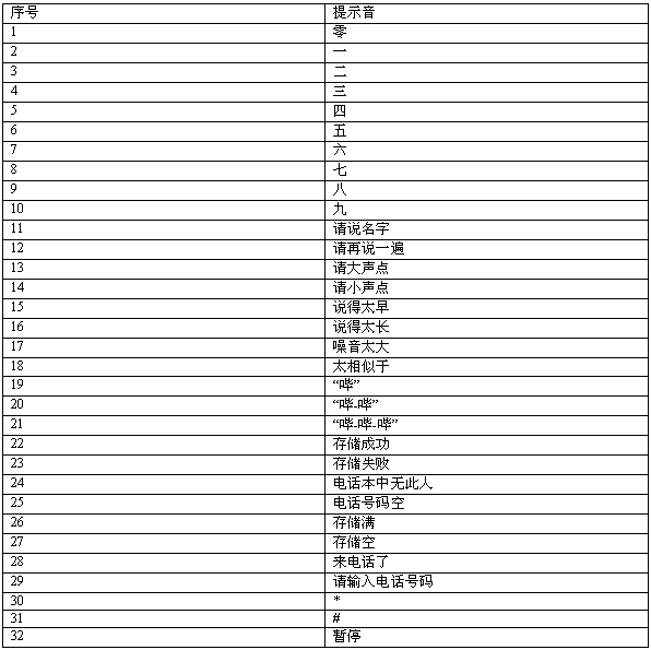 表六 提示音表