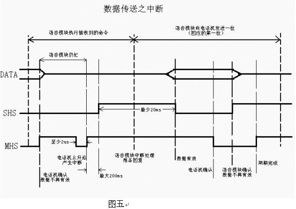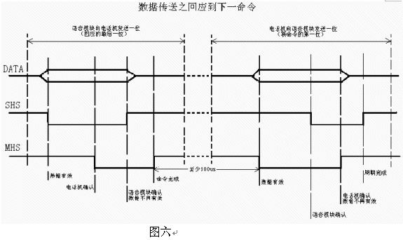 以下的表格和時序圖詳細描述了電話機控制芯片和語音模塊間的數(shù)據(jù)傳送: