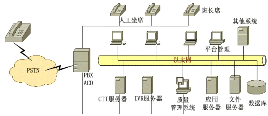 負(fù)責(zé)座席話機(jī)與計(jì)算機(jī)的同步,話務(wù)員在接到電話的同時(shí),屏幕上已經(jīng)同步地顯示出該客戶的相關(guān)信息,使話務(wù)員可以針對(duì)客戶記錄為客戶提供更為體現(xiàn)的個(gè)性化服務(wù)。PBX/ACD、IVR和座席之間關(guān)于呼叫控制和信息傳輸都是通過(guò)CTI服務(wù)器完成的,是呼叫中心通信中樞神經(jīng)系統(tǒng)。