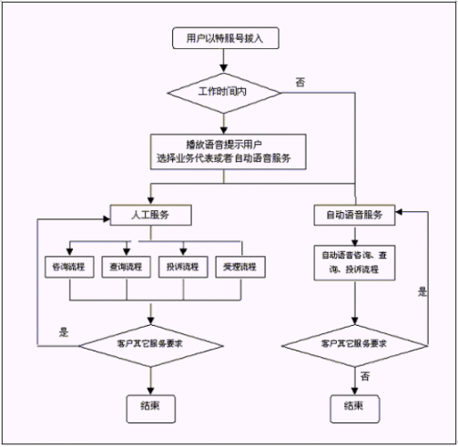 。。通過人工座席、自動語音服務(wù)、Web等方式,受理客戶所申辦的各類業(yè)務(wù),將受理記錄生成多種形式的工作單(派單),并轉(zhuǎn)發(fā)相應(yīng)部門進(jìn)行處理,待處理結(jié)果通過網(wǎng)絡(luò)返回到客戶服務(wù)中心后,客戶服務(wù)中心以電話、傳真、短信息、Email等方式回復(fù)客戶。