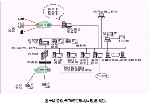 系統(tǒng)的設(shè)計采用先進的客戶機/服務(wù)器網(wǎng)絡(luò)體系結(jié)構(gòu),集目前先進的計算機技術(shù)、通信技術(shù)、計算機電信集成(CTI)技術(shù)、多媒體呼叫接入技術(shù)、數(shù)字語音處理技術(shù)、異構(gòu)系統(tǒng)信息交互技術(shù)、INTERNET網(wǎng)絡(luò)技術(shù)、安全容錯技術(shù)等于一體,并與地方政府已有技術(shù)支持系統(tǒng)(如MIS系統(tǒng)、辦公自動化系統(tǒng)等)緊密結(jié)合在一起,突破時空的限制,通過人工座席、自動語音/傳真、政府相關(guān)人員等為群眾提供周到、快捷、全方位的便民服務(wù),為人民群眾與地方政府之間架起一座密切聯(lián)系的橋梁。