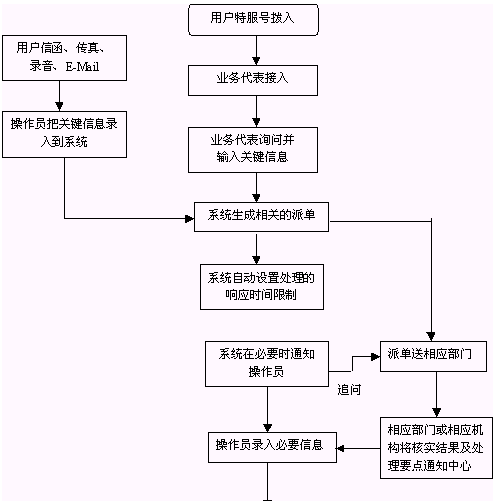 人民群眾打入電話后,當(dāng)系統(tǒng)的自動(dòng)語音應(yīng)答子系統(tǒng)無法解決客戶問題時(shí),客戶可選擇人工服務(wù),由企業(yè)客戶服務(wù)代表直接接聽客戶電話,處理并解決客戶問題。此時(shí)客戶同座席話務(wù)人員直接溝通,并同時(shí)記錄下該客戶的聯(lián)系方式,將相關(guān)數(shù)據(jù)添加入系統(tǒng)數(shù)據(jù)庫;也可以在數(shù)據(jù)庫的支持下回答質(zhì)量監(jiān)督咨詢、投訴等。客戶也可以選擇自動(dòng)語音服務(wù)方式,根據(jù)系統(tǒng)的語音提示輸入按鍵,選擇類別,將自己的投訴和建議以及自己的聯(lián)系方式信息以留言錄音的方式保存在系統(tǒng)中。系統(tǒng)同時(shí)還支持自動(dòng)傳真方式,客戶可以通過傳真機(jī)進(jìn)入本系統(tǒng),通過按鍵選擇傳真方式,將自己的意見建議等的文本內(nèi)容傳真給系統(tǒng),系統(tǒng)自動(dòng)接受并存入數(shù)據(jù)庫。