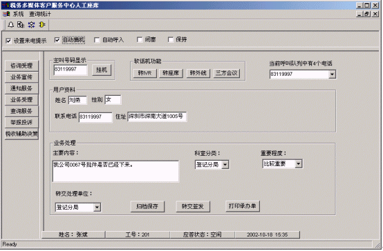 ·系統(tǒng)提供計算機(jī)語音板卡和排隊交換機(jī)兩種語音接入方案