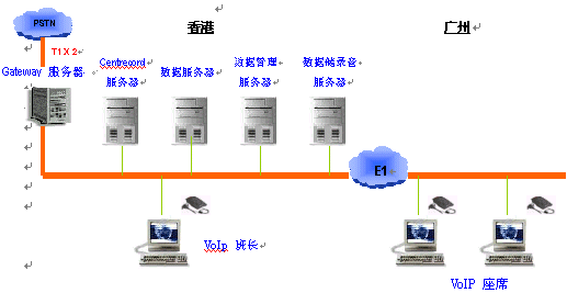 于本年一月初,基于Concerto Software平臺建設的中港跨境呼叫中心正式由本公司替GIS于香港及廣州開通。初期于廣州之座席數(shù)目為24。廣州與香港間透過1條E1專線連接。(結構如下)