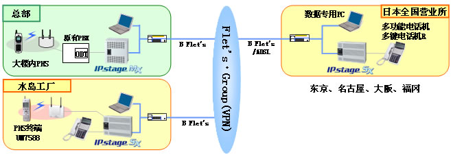 SX”通過SIP協(xié)作的IP電話系統(tǒng)。系統(tǒng)中所采用的“IPstage MX/SX”通過NTT西日本的VPN服務(wù)“Flet's・Group”相互連接,實(shí)現(xiàn)高音質(zhì)的內(nèi)線環(huán)境。使用內(nèi)線電話號碼進(jìn)行事業(yè)所之間的通話聯(lián)系,可以直接與想聯(lián)系的對象通話,無需傳叫電話。進(jìn)而,由于工廠采用了沖電氣所制造的PHS終端“UM7588”,可以在工廠任何地方實(shí)現(xiàn)直接電話聯(lián)系。導(dǎo)入該系統(tǒng)后,即使業(yè)務(wù)場所分處幾地,也能成功實(shí)現(xiàn)員工間的迅速溝通。