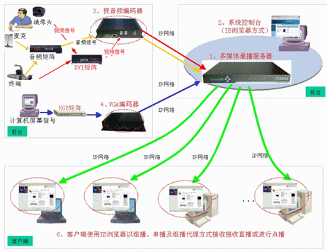 通過服務(wù)器內(nèi)置單播或組播功能方式將會(huì)議現(xiàn)場的視頻、音頻、計(jì)算機(jī)屏幕上的圖像內(nèi)容和過程在網(wǎng)絡(luò)上進(jìn)行實(shí)時(shí)直播,用戶可通過IE瀏覽器登錄服務(wù)器實(shí)時(shí)接收會(huì)議現(xiàn)場的視頻、音頻和計(jì)算機(jī)動(dòng)態(tài)屏幕內(nèi)容,也可以選擇性的直播部分媒體流,直播延時(shí)小。同時(shí)系統(tǒng)獨(dú)家支持組播代理功能,無須更改網(wǎng)絡(luò)設(shè)備設(shè)置的即可實(shí)現(xiàn)跨網(wǎng)段的組播。