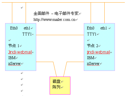 本項(xiàng)目采用金笛集群郵件系統(tǒng),通過(guò)兩臺(tái)IBM PC服務(wù)器實(shí)現(xiàn)高可用性。支持SMTP, POP3,IMAP等主流協(xié)議,支持WebMail,支持郵件列表等功能,同時(shí)要求兼容性好,與網(wǎng)站其他業(yè)務(wù)系統(tǒng)沒(méi)有沖突。
