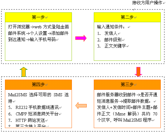 。。一方面,電子郵件的使用越來越頻繁,成為不可缺少的通訊、交流手段,另一方面,手機(jī)越來越便宜,越來越普及。有沒有可能通過郵件發(fā)送短消息?或者發(fā)送郵件同時給對方發(fā)送短消息,通知對方收取郵件?如果郵件和短消息結(jié)合起來,相互取長補(bǔ)短,其優(yōu)勢是不言而預(yù)的。