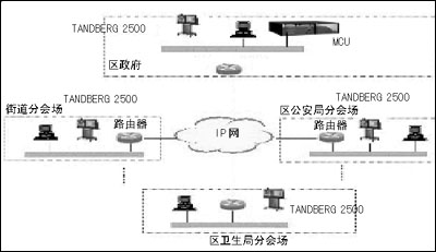 由于時間非常緊迫,東城區(qū)政府首先決定在一些重要單位安裝視頻會議系統(tǒng),一期建設(shè)包括區(qū)委、區(qū)政府、區(qū)公安分局、衛(wèi)生局、北京站地區(qū)管理處、王府井建管辦和10個街道辦事處共15個會議節(jié)點。4月底,經(jīng)過緊張而認真的測試,TANDBERG公司的視頻會議終端以其卓越的性能最終贏得了領(lǐng)導和專家的認可。