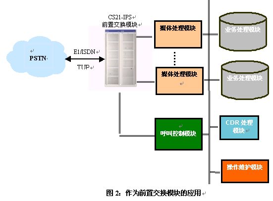前置交換模塊:是一套可編程交換機,提供E1和10/100M Ethernet接口,支持SS7、ISDN、TUP等信令 。具有大容量交換網(wǎng)絡、信號音、語音資源、會議電話功能。