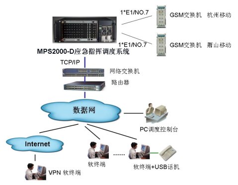 從上示組網(wǎng)圖中可以看到,整套MPS2000-D應(yīng)急指揮調(diào)度系統(tǒng)利用了移動(dòng)網(wǎng)管中心的數(shù)據(jù)網(wǎng)絡(luò)資源,通過(guò)SIP協(xié)議,在各個(gè)PC終端上通過(guò)軟終端的方式接入調(diào)度系統(tǒng),作為IP調(diào)度終端。平時(shí)可將該軟終端作為個(gè)人通訊助理終端,解決用戶的多種通信需求。并通過(guò)PC調(diào)度臺(tái)來(lái)對(duì)整套系統(tǒng)進(jìn)行應(yīng)急調(diào)度控制。