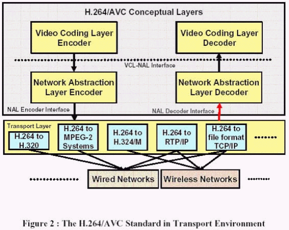 根據(jù)圖2,H.264/ AVC在不同的概念層上區(qū)分開來,視頻編碼層(VCL)和網(wǎng)絡(luò)抽象層(NAL)。VCL和NAL都是H.264/ AVC標(biāo)準(zhǔn)的一部份。VCL對視頻編碼信號進行了有效的說明。H.264/AVC的NAL定義了視頻編碼和外面世界之間的接口。它通過NAL單元來支持大部分基于包的網(wǎng)絡(luò)。在NAL解碼接口,它假設(shè)NAL單元已經(jīng)通過解碼命令被發(fā)送,數(shù)據(jù)包要么被正確接受,要么丟失,如果有效載荷里包括了錯誤的數(shù)據(jù)流,NAL單元的頭就會產(chǎn)生一個錯誤的標(biāo)記。由于標(biāo)記可以用于不同的目的,因此它并不作為標(biāo)準(zhǔn)的一部分。然而,它提供一個在整個網(wǎng)絡(luò)里提供錯誤指示信號的方法。此外,接口規(guī)范要求標(biāo)準(zhǔn)化主體有責(zé)任對不同傳送協(xié)議進行描述。NAL單元在不同傳輸系統(tǒng)的精確傳輸和加密,例如H.320,MPEG-2系統(tǒng)和RTP/IP,也同樣在h.264/AVC標(biāo)準(zhǔn)化的范疇以外。在標(biāo)準(zhǔn)里面正式定義了NAL解碼接口,然而,VCL和NAL之間的接口只是概念上的定義,主要是幫助描述和分開VCL和NAL的任務(wù)。