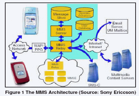 本概述提供了有關(guān)MMS標(biāo)準(zhǔn)的簡要介紹,主要針對視頻內(nèi)容交換方面的內(nèi)容;镜腗MS網(wǎng)絡(luò)架構(gòu)如圖 1。