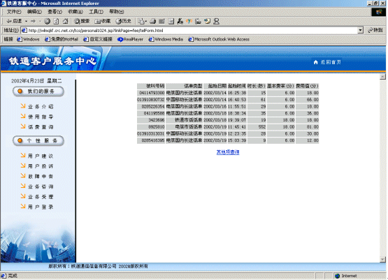 2)鐵通新業(yè)務(wù)使用咨詢界面