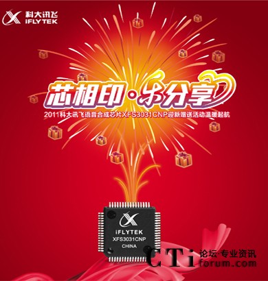 “芯” 相印,樂分享!為答謝并回饋廣大新老用戶,2011科大訊飛語音合成芯片XFS3031CNP迎新贈(zèng)送活動(dòng)12月28日起溫暖起航!