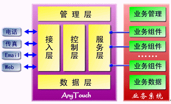 AnyTouch不僅僅是一個面向應(yīng)用開發(fā)商、系統(tǒng)集成商的CTI中間件產(chǎn)品,而且提供支持最終用戶自我維護(hù)、開發(fā)、編輯的業(yè)務(wù)接口與開發(fā)工具包。基于AnyTouch,可以根據(jù)不同的行業(yè)需求開發(fā)出不同的業(yè)務(wù)應(yīng)用系統(tǒng),從而構(gòu)筑屬于自己的呼叫中心、企業(yè)增值服務(wù)、通訊服務(wù)、信息服務(wù)及CRM系統(tǒng)。