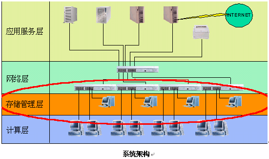 存儲管理層的管理機主要承擔(dān)著為E&E終端提供軟件(操作系統(tǒng)和應(yīng)用軟件)的服務(wù)。根據(jù)實際需要,管理機可以提供多種操作系統(tǒng)的環(huán)境和多種應(yīng)用的環(huán)境。每臺管理機最大可以為60臺的E&E終端提供服務(wù),可以實現(xiàn)操作系統(tǒng)、應(yīng)用、配置的統(tǒng)一分發(fā)和維護。