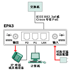 EPA3 是緊湊型適配器,允許 IP 電話或其他附件通過現(xiàn)有的局域網(wǎng)布線接收數(shù)據(jù)并為其供電,而無需修改現(xiàn)有的以太網(wǎng)基礎(chǔ)結(jié)構(gòu)。EPA3 集成了一個 3 端口交換機(jī),以便可以連接一個帶電源的設(shè)備以及另外一個設(shè)備。