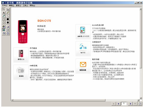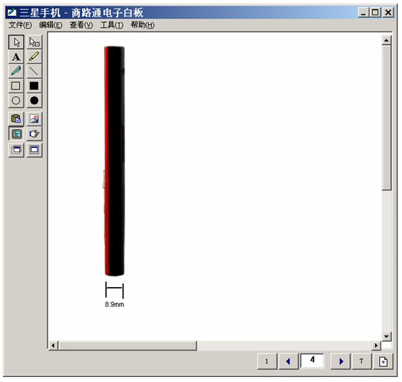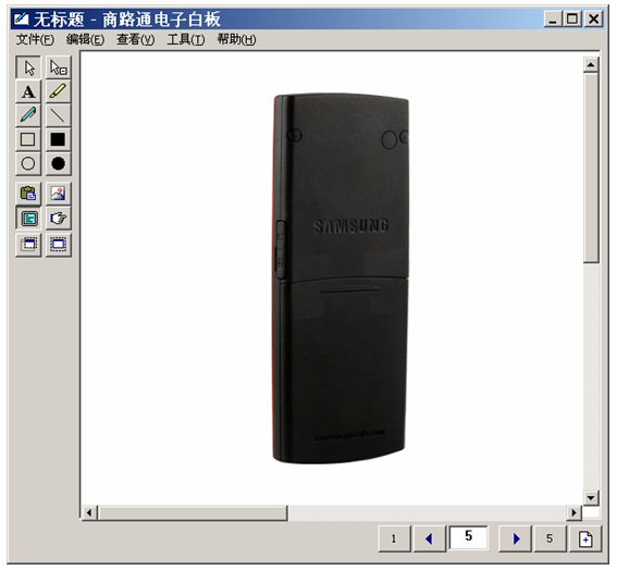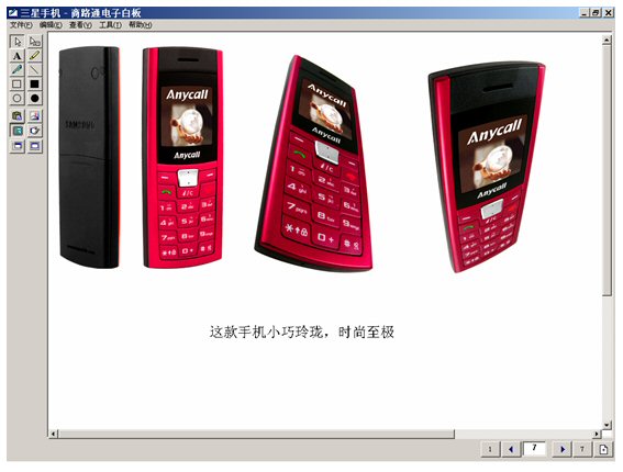 坐席進(jìn)入富媒體知識庫,調(diào)出三星手機(jī),啟動電子白板,將這個(gè)畫面推送給客戶。